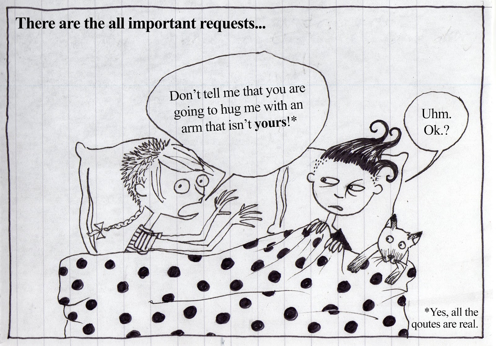 I never really realised how much I sleep talk. And there is some quite entertaining acting that goes with it too. Sometimes it is just a bit too much for poor Jacqui. It doesn't happen every night but quite often she gets woken up by a seemingly awake and very insistent me, who tries to convince her that something is happening. Here is a selection of some recent events.
